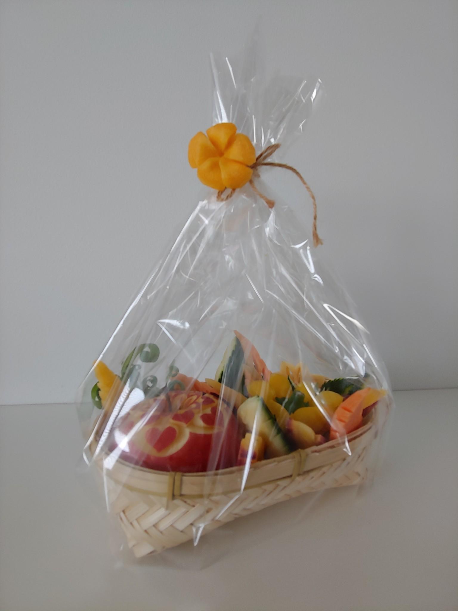 Fruit Garden has Basic Courses on its own premises (Bulevardi 48 A 24, Helsinki). Course fee is 49e/person (inc alv). Cost of material and free use of knives is included in the price. Max. 5 persons. Participants can take away their carvings nicely set in a basket (click the two last pictures above). Basic course lasts 3 hours.